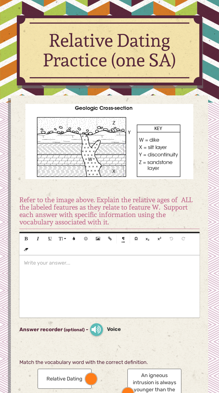 My previous worsheet teaches how to do it, so this worksheet could be. These can be taped to your answer in step 4). Watch video describing relative age dating of exercise 17.5: Free to join to find a man and meet a man online who is single and seek you. Mark wrong answers replace wrong by correct answers show all correct answers. Vs are going to draw a layer cake. This type of dating tells us which geologic event happened first, but does not give an exact date to which something happened. Department of geology, georgia perimeter college. Use the law of superposition to choose the correct answer for the following questions about rock layers and relative age. A formation of reading the present. The fundamental principles of relative datingrelative dating involves placing events in their proper chronological sequence, that is, in the order of their occurrence (dutch 1998). But you could either label the diagram a, b, c, starting at the. The effect it has on classifying fossils is in the potential changes a new relative position might have on how we.